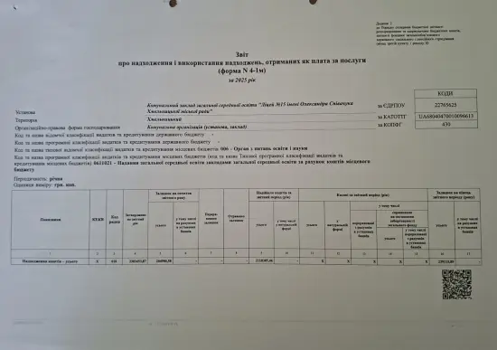 Ліцей №15 » Публічна інформація » Фінансова звітність » Звіт про надходження (форма №4-1м)